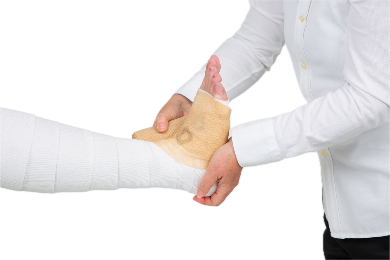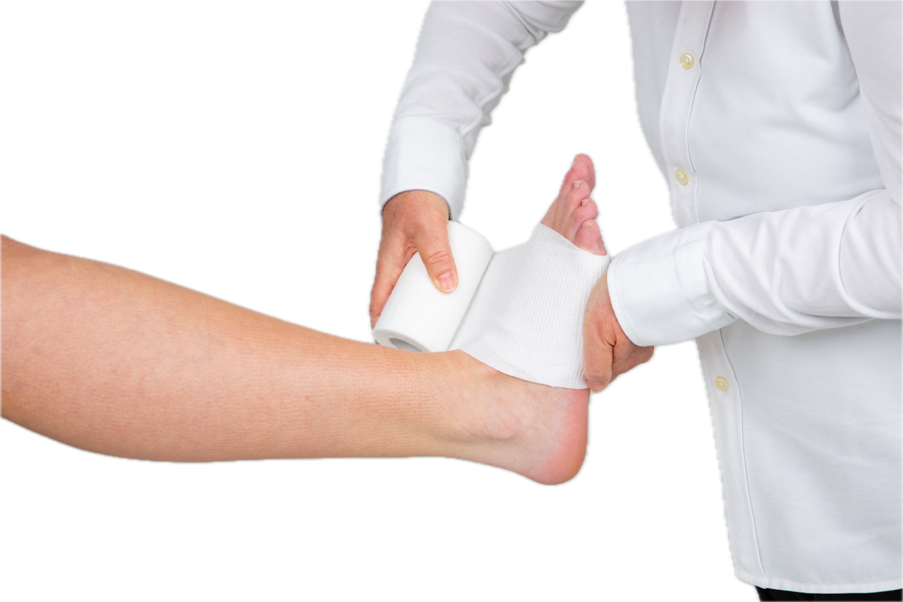 2. Achten Sie während der gesamten Anlage des Kompressionsverbandes darauf, dass sich der Fuß des Patienten in einem 90° Winkel zum Unterschenkel befindet.